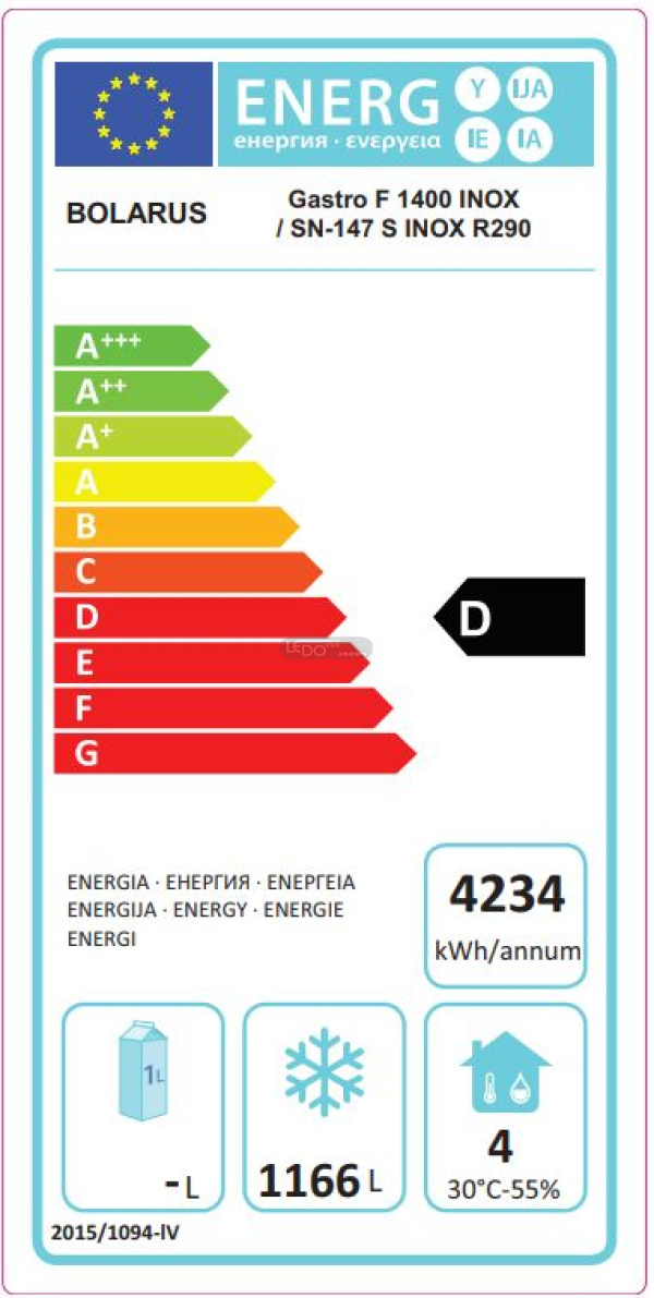 Mrazicí skříň Gastro Inox F1400 – dvoje dveře