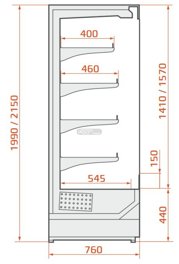 • – venkovní korpus v barvě RAL: 9003, 3000, 6029, 1021, 5010, 7004, 7015, 9005